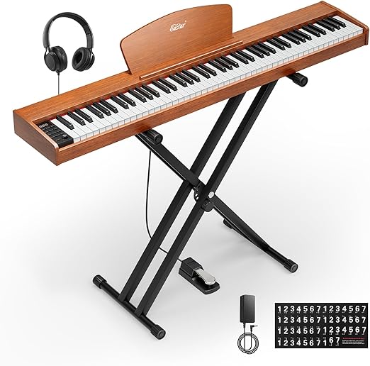 Piano set digital EP-80 ini mencakup stand X ganda yang dapat disesuaikan, headphone, stiker piano untuk belajar, pedal sustain, dan stand musik. Pilihan lengkap ini akan bermanfaat bagi perjalanan musik seorang pemula.